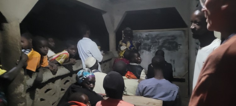 Dans la soirée, les membres du premier groupement se réunissent avec nous pour échanger. Ils nous font part de leurs besoins qui sont exprimés lors de notre accueil au village. Autre activité financée par Guinée-Cornouaille, l’alphabétisation. Une séance se tient ce jour-même. Nous sommes très émus d’échanger avec les participants qui expriment leur fierté de leur progrès en lecture et en écriture.
