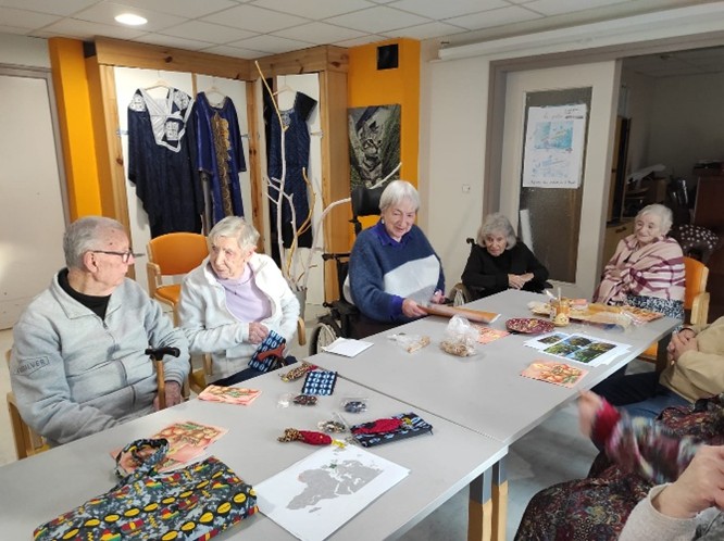 À la maison Le Gall, elle a permis de commencer la fabrication d’objets avec des tissus africains qu’elle avait apportés ; leur vente a d’ailleurs alimenté la caisse commune des résidents de l’EHPAD.